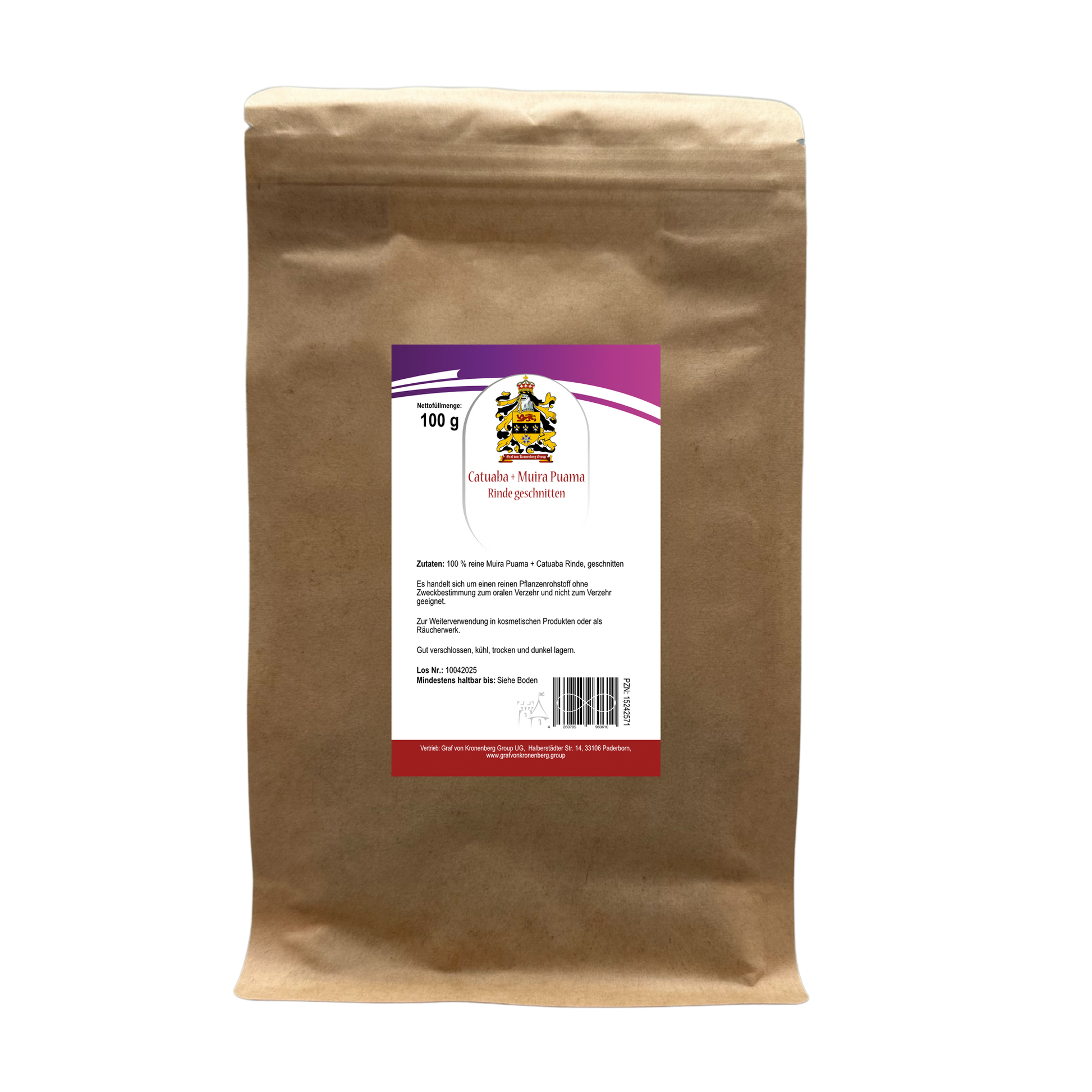 Peso neto: 100 g de corteza de Muira Puama + Catuaba, cortada en rodajas