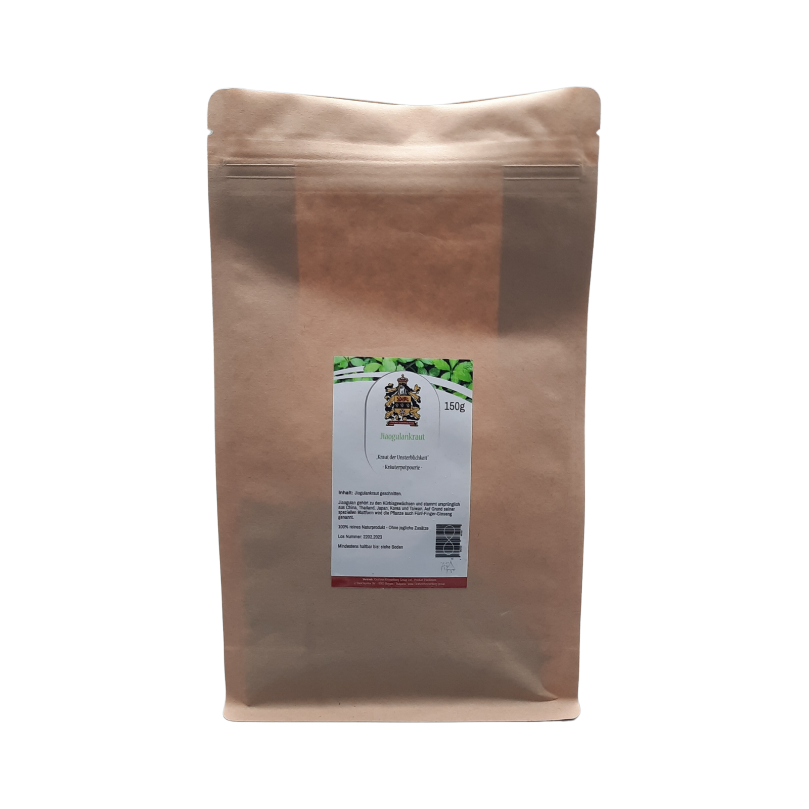 Contenido: 150 g de hierba Jiogulan cortada, en una bolsa de papel kraft con cierre de cremallera.