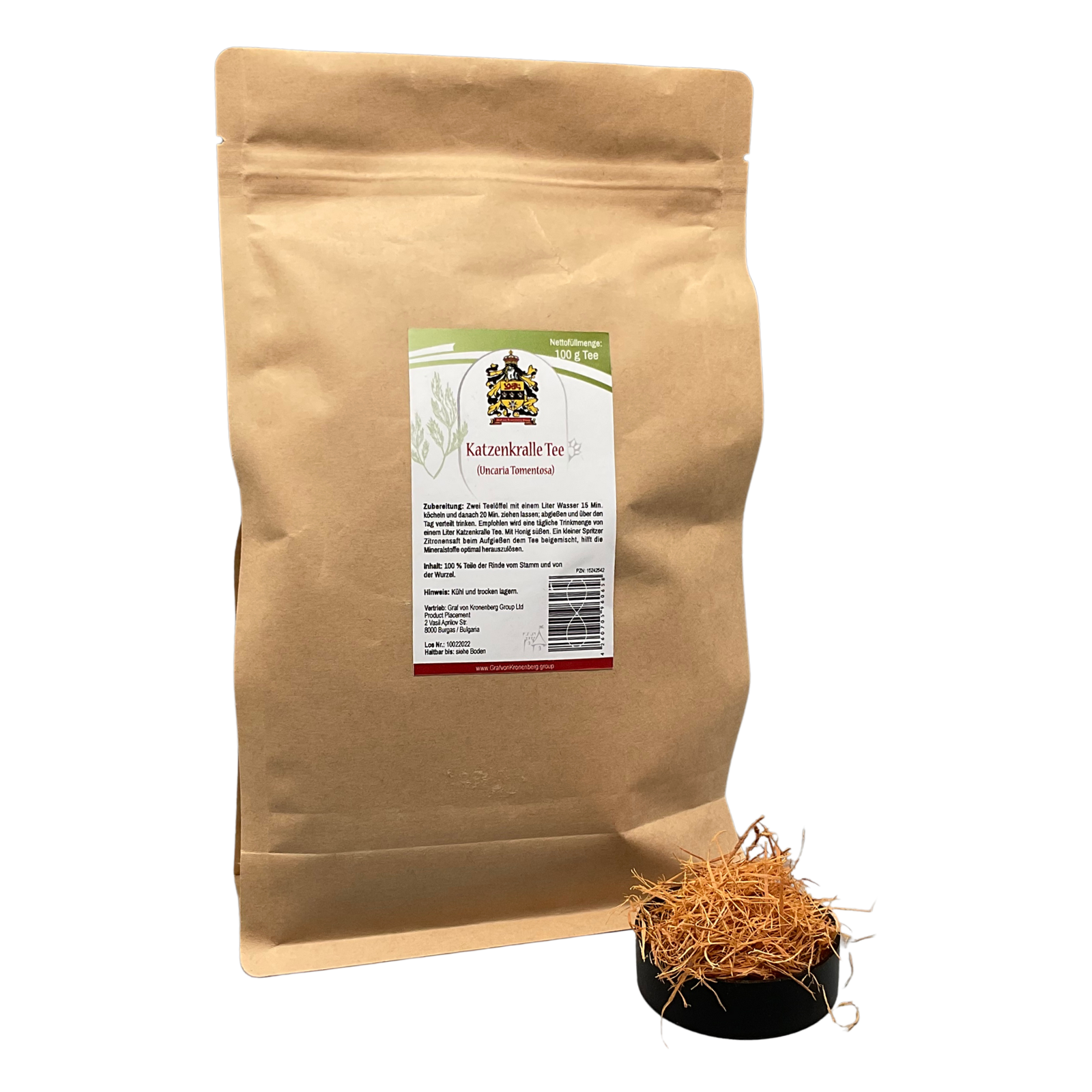 Calienta suficiente agua para 4 tazas de té. Usa 1 cucharadita de uña de gato por taza. Deja reposar 5 minutos o más. Para un té más fuerte, usa hasta 1 cucharada de uña de gato por taza.