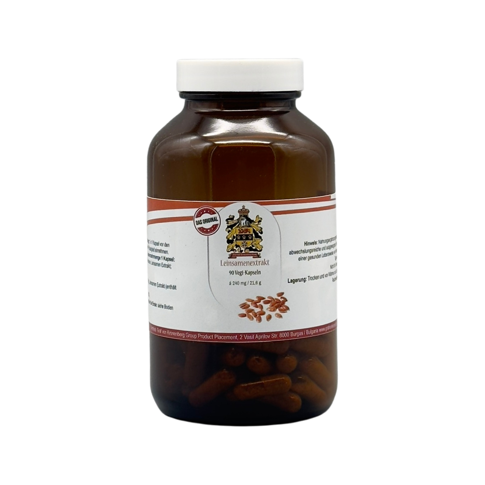 Contenido: 90 cápsulas vegetarianas que contienen extracto de linaza (contiene 20% de lignanos) a 240 mg/21,6 g cada una