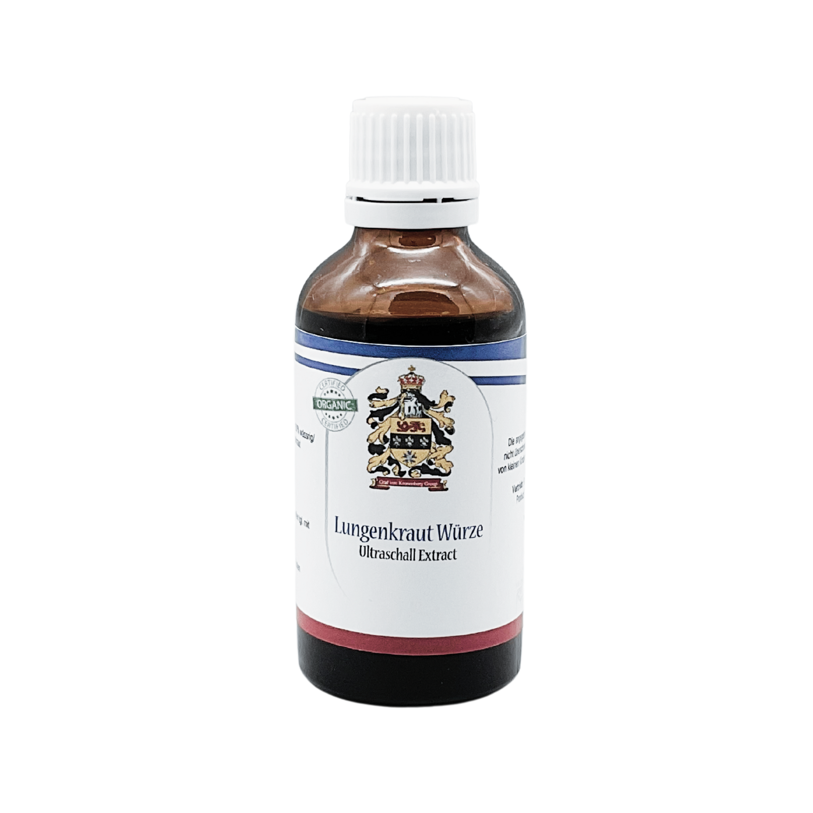 Gotas de Pulmonaria: Naturalmente efectivas para los bronquios . La pulmonaria (Pulmonaria officinalis) ya era utilizada por Hildegard von Bingen para apoyar el sistema respiratorio. Contiene ingredientes valiosos como mucílago, flavonoides, alantoína y sílice, con propiedades antiinflamatorias y supresoras de la tos . Nuestro extracto hidroalcohólico de alta calidad se produce mediante un sofisticado proceso de extracción ultrasónica y contiene un 40 % de alcohol.
