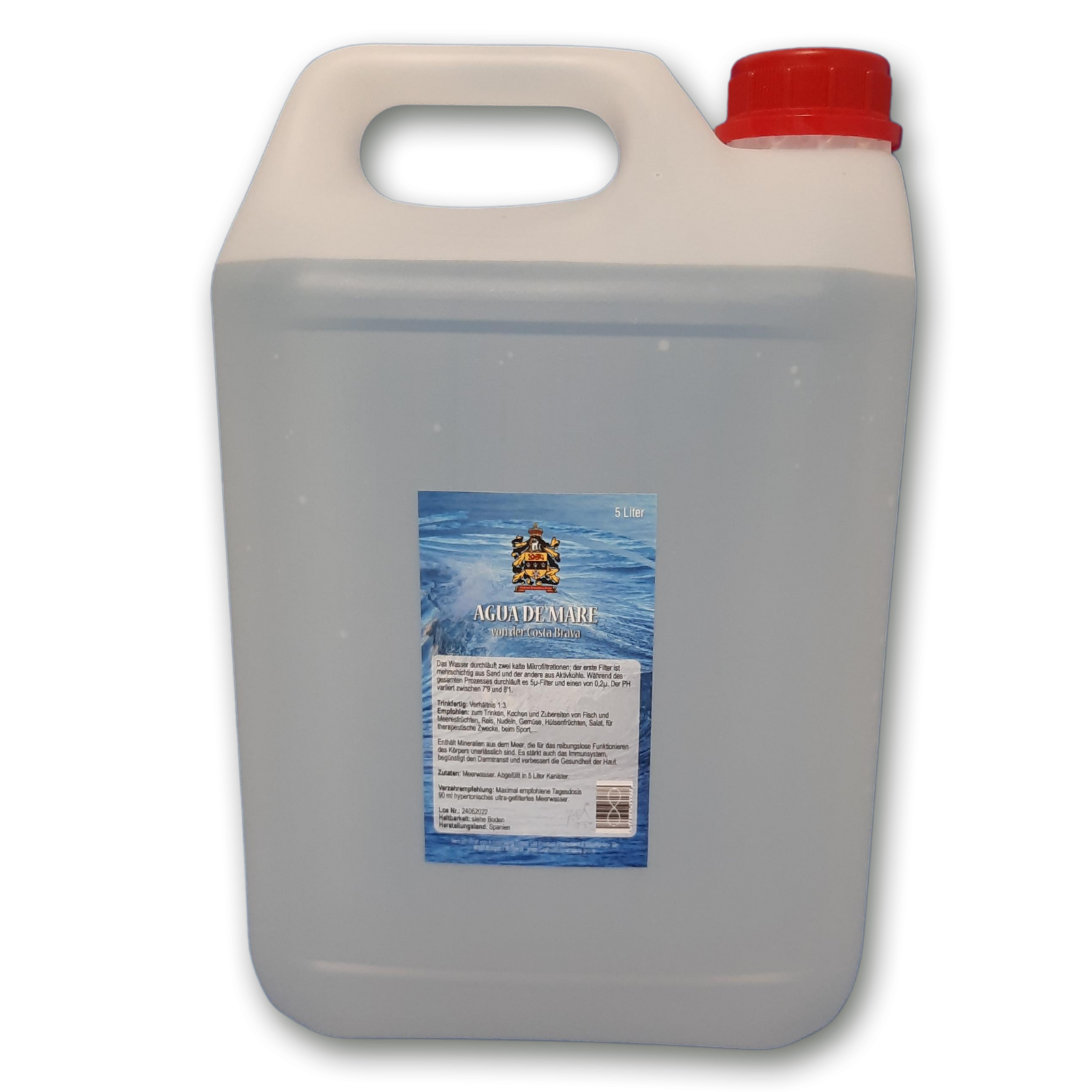 Ingredientes: Agua de mar, agua de shungita, lista para beber: proporción de mezcla 1:3 con agua de shungita , embotellada en bidones de 5 litros.