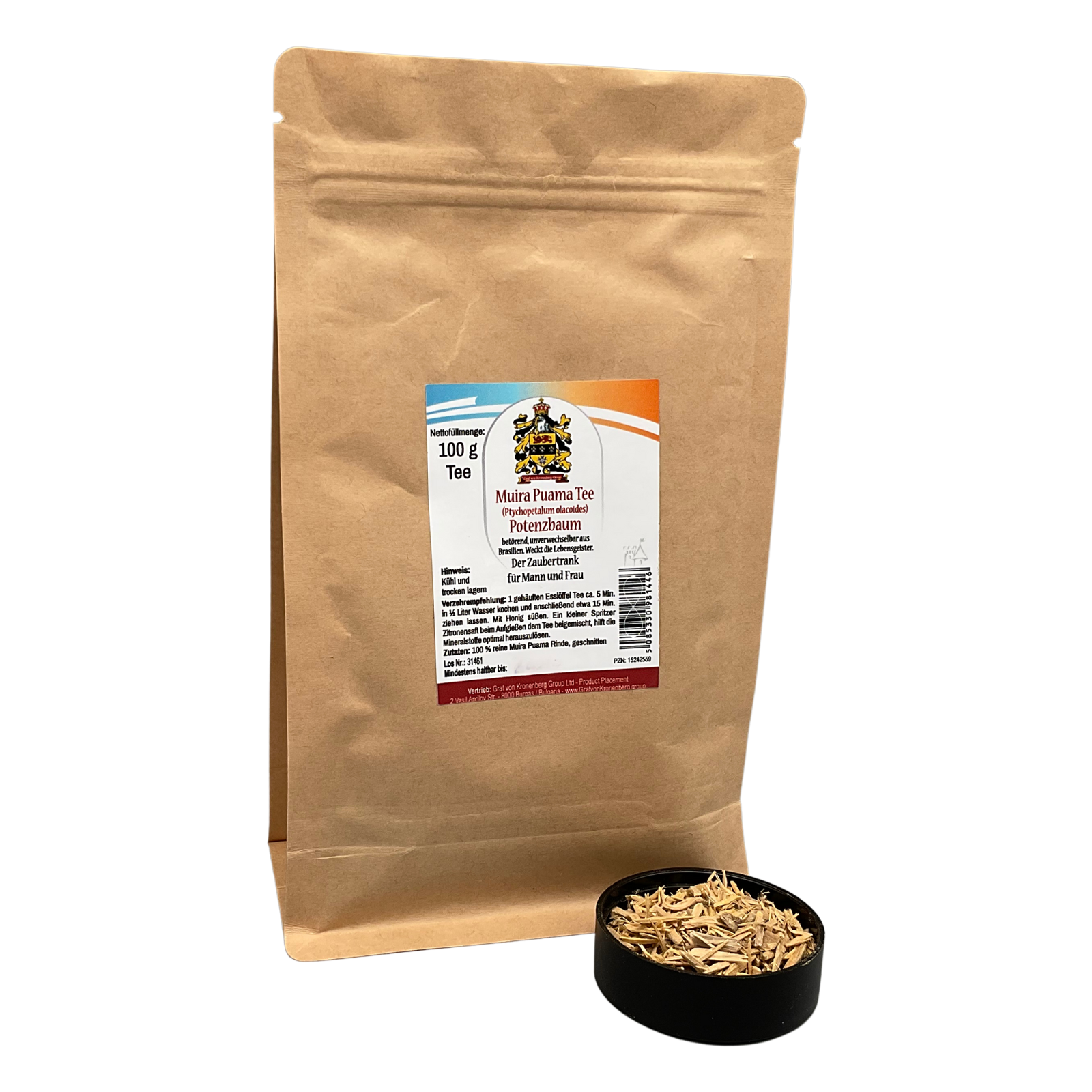 Contenido: 100 g de té de corteza de Muira Puama