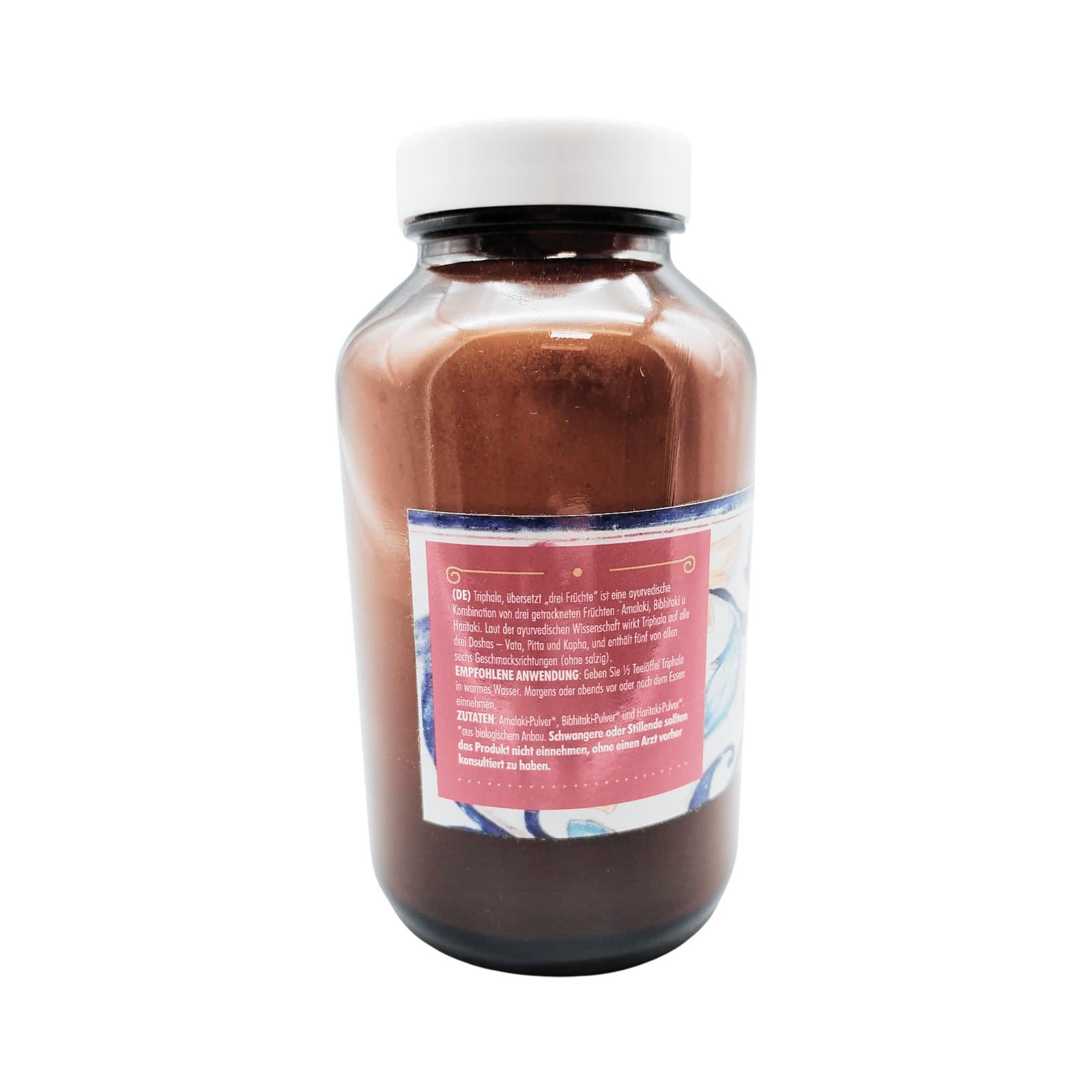 Triphala se compone de los frutos secos de Amalaki, Bibhitaki y Haritaki. Tiene un efecto positivo en los tres doshas (Vata, Pitta y Kapha) y contiene cinco de los seis sabores (excepto el salado). Triphala favorece el funcionamiento normal de todo el sistema digestivo.