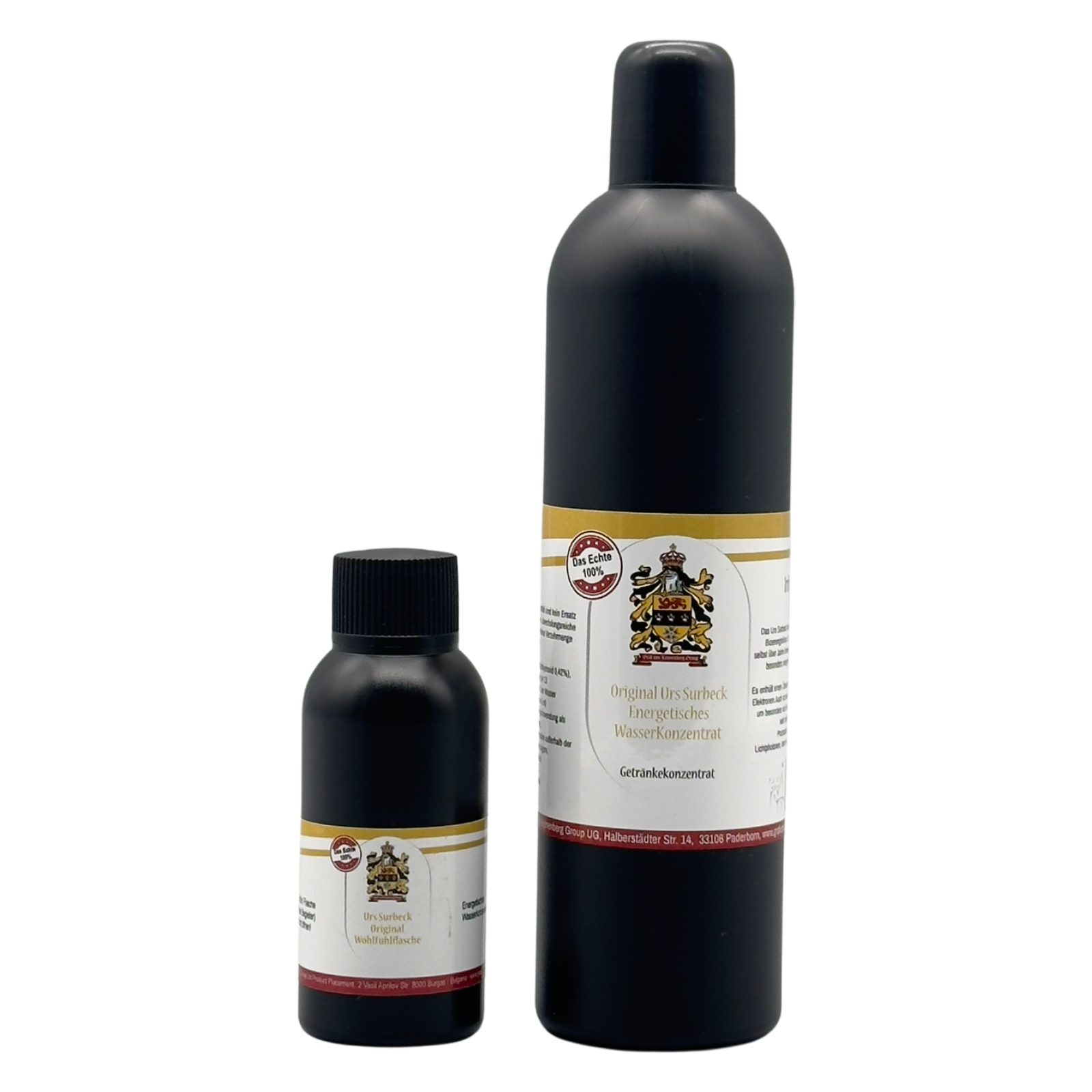 Concentrado de agua energizante original de Urs Surbeck/el auténtico 100%, botella negra de HDPE de 150 ml con dosificador, botella de bienestar negra de HDPE de 50 ml