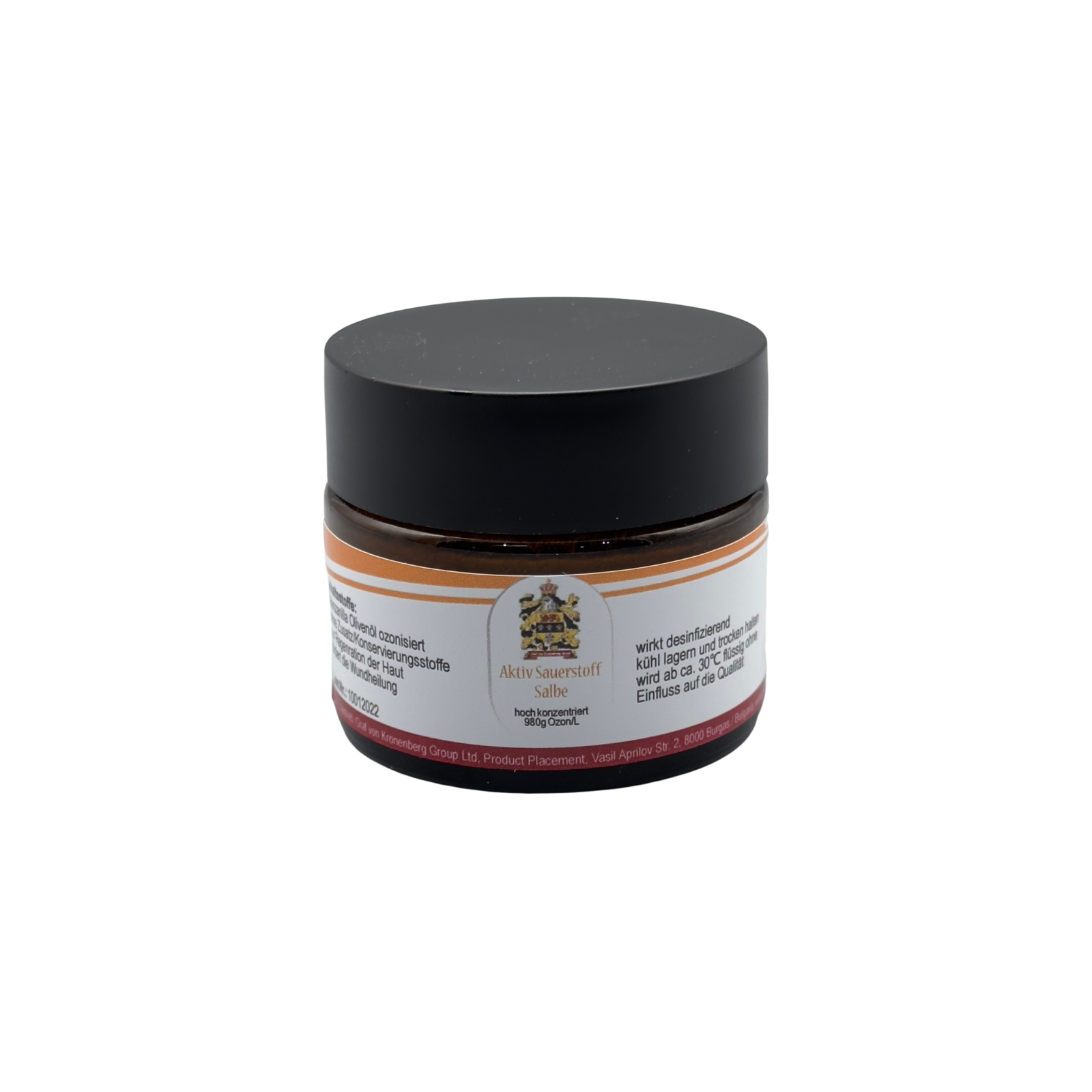 Contenido: Tarro de cristal de 30 ml, aceite de oliva manzanilla 100% virgen prensado en frío, ozono medicinal.