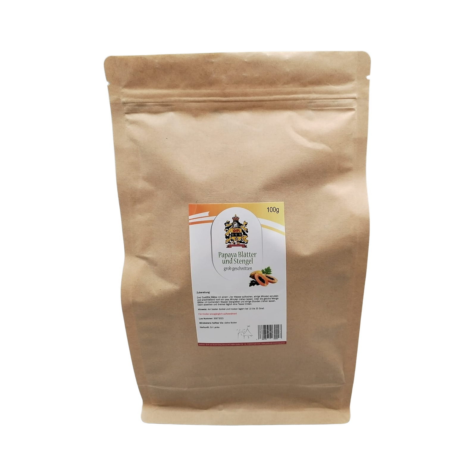 Hojas y tallos de papaya, picados gruesos, 100 g de Sri Lanka, cosechados de forma silvestre