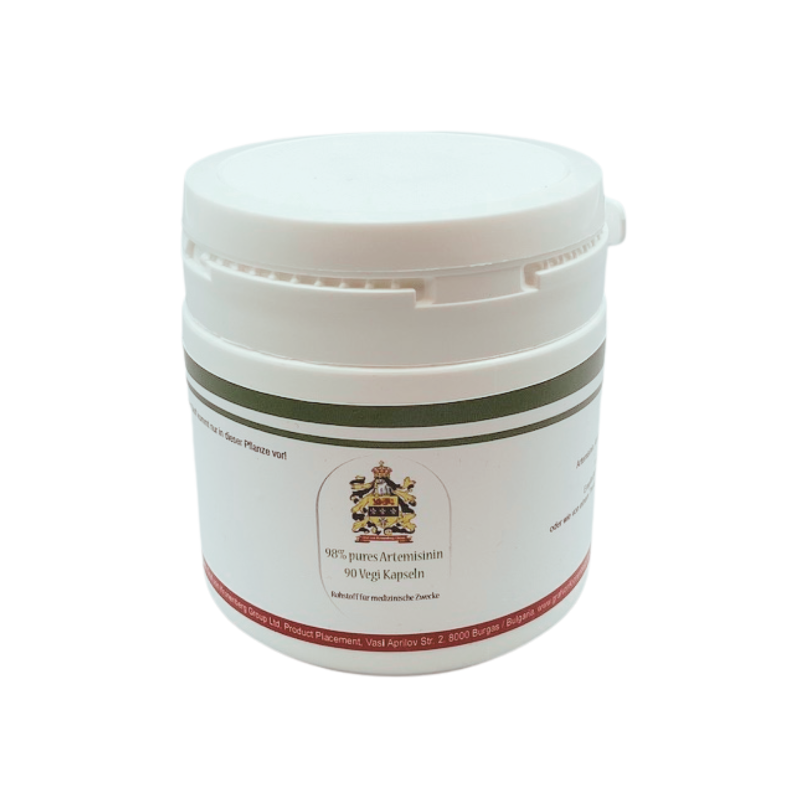 Este producto contiene un extracto de artemisinina altamente purificado con un 98,8 % de ingrediente activo, extraído de la planta tradicional Artemisia annua . El cultivo y la producción se realizan en Alemania bajo condiciones controladas. Cada cápsula contiene 177 mg de artemisinina y 19,6 mg de polvo de Artemisia annua finamente molido, combinados en una cápsula de HPMC puramente vegetal (vegana, sin gluten y sin aditivos).