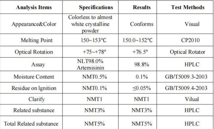 Artemisinina de alta pureza de Artemisia annua, materia prima vegetal técnica